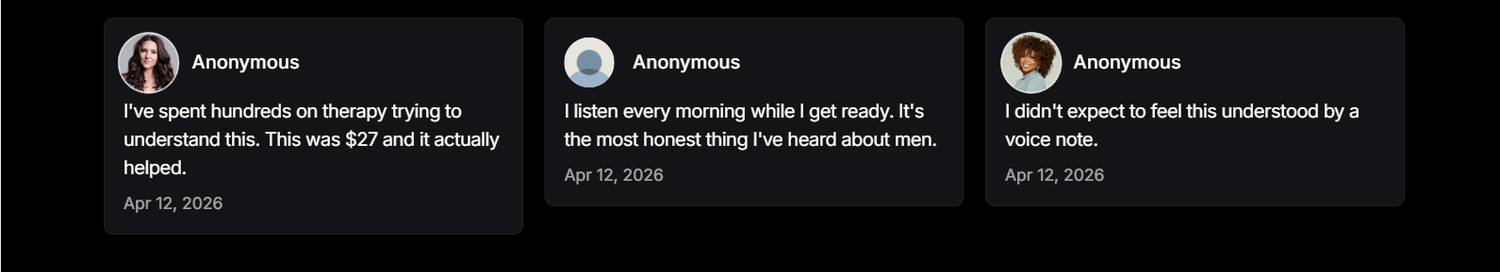 This is not a podcast or a course with modules to get through. It's not another article about attachment styles. Just me, Evan, talking directly to you about what men actually think. About why he pulled back. About why you attach before you should. About what consistency really looks like from a man's side. About how to date without losing yourself in the process.